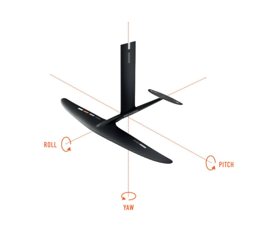 Roll, yaw, and pitch are the three ways a foil can rotate about its axis. These are the same concepts used in aviation.