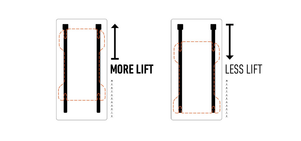 The position of your foil in the US box rails has a direct influence on your foil behavior.